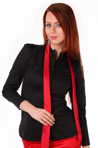 ОписаниеЭлегантная черная рубашка с воротником стойкой, у которого острые уголки.
