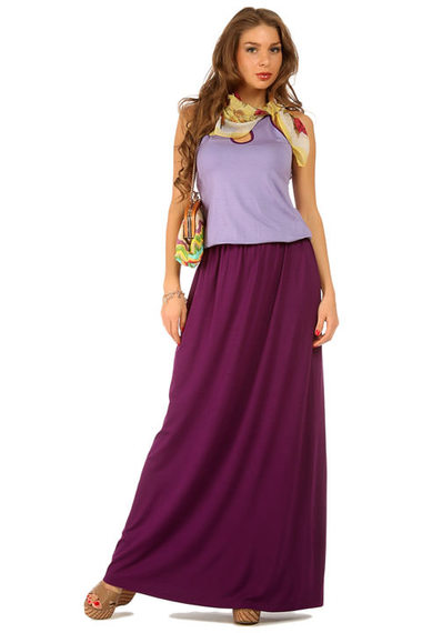 ОписаниеДлинное летнее платье из вискозы двух цветов% юбочная часть выполнена из ткани насыщенного фиолетового цвета, а топ выполнен из ткани фиалкового оттенка. Интересная деталь - вырез "капелька", по контуру отделанный тканью в тон к юбке.