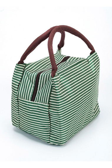 Фото товара 17050, термосумка для ланч-бокса в полоску «горячий обед» зеленая